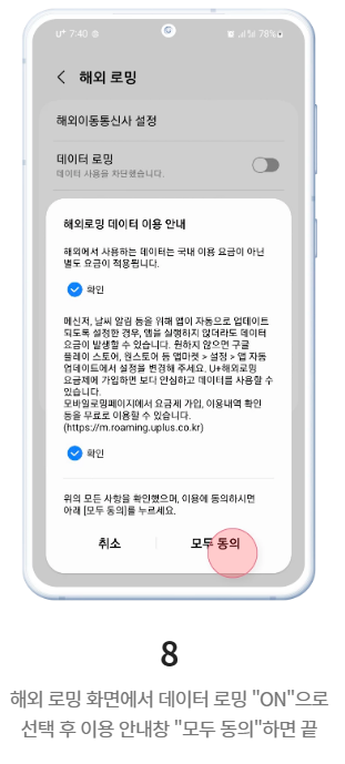 저는 5일 여행이라 [5일/ 매일 500MB 이후 속도저하]로 하였습니다.